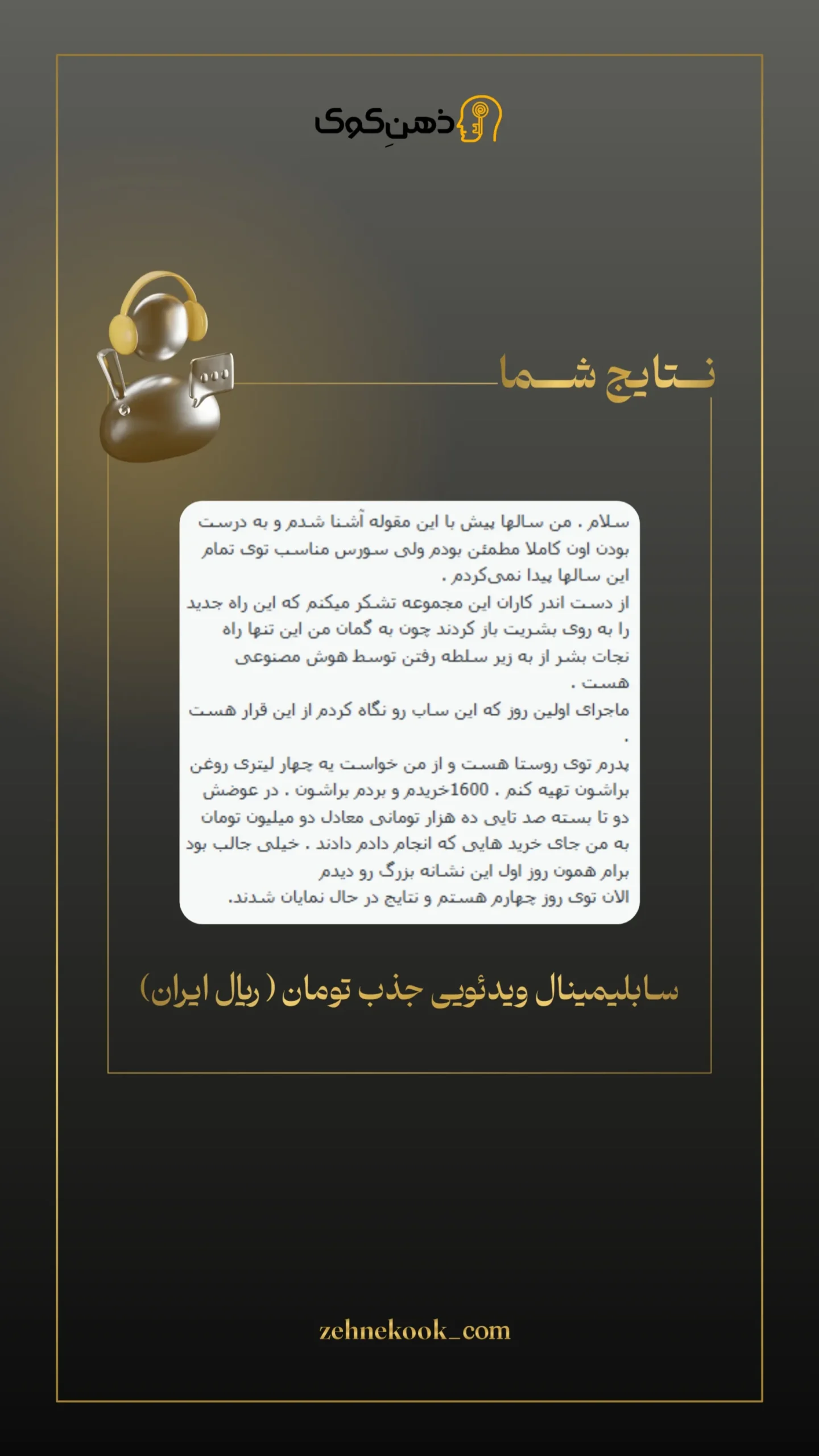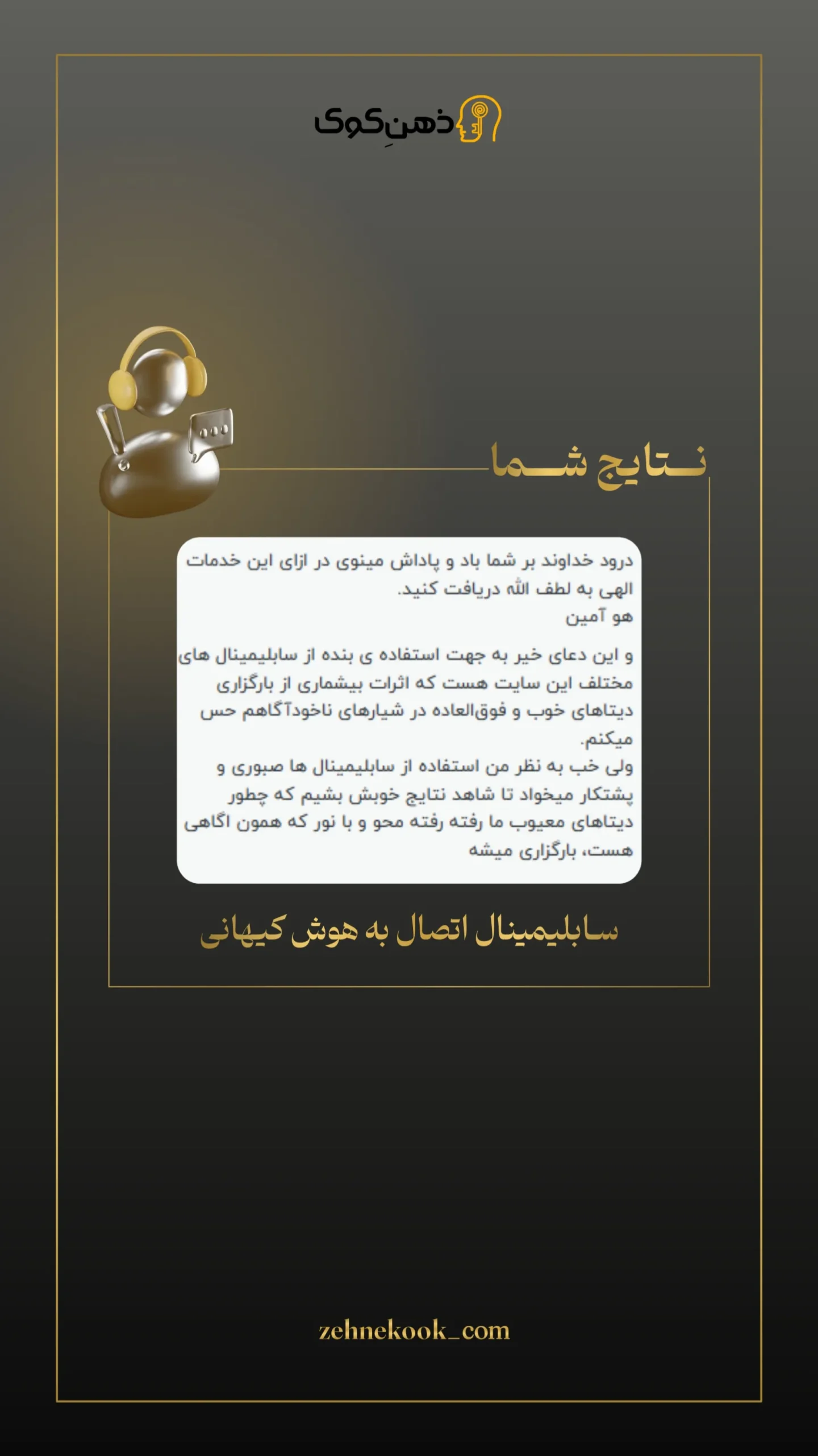 وب سایت ذهن کوک جامع ترین و کامل ترین تولید کننده سابلیمینال های پلی فونیک در دنیاست که جدیدترین و تاثیر گذارترین مدل سابلیمینال ها را می سازد.